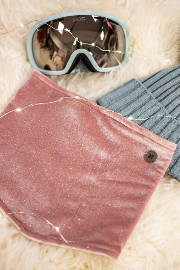 Our favourite neckwarmer “Dis” represents the Arctic sunsets, a dusty pink with glittery snow over the landscape. The velvety fabric sparkles in the sun and will catch eyes on the slopes, whilst the fleece lining will keep you warm even on the coldest days.
